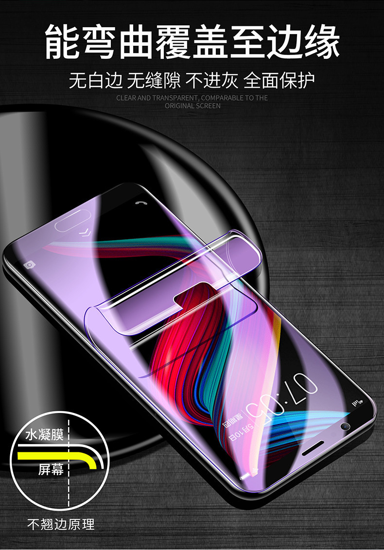 oppor11s钢化水凝膜r11抗蓝光R11Splus手机曲面全屏覆盖r11plus原装软全包无白边软边磨砂0ppo前贴膜mo防摔