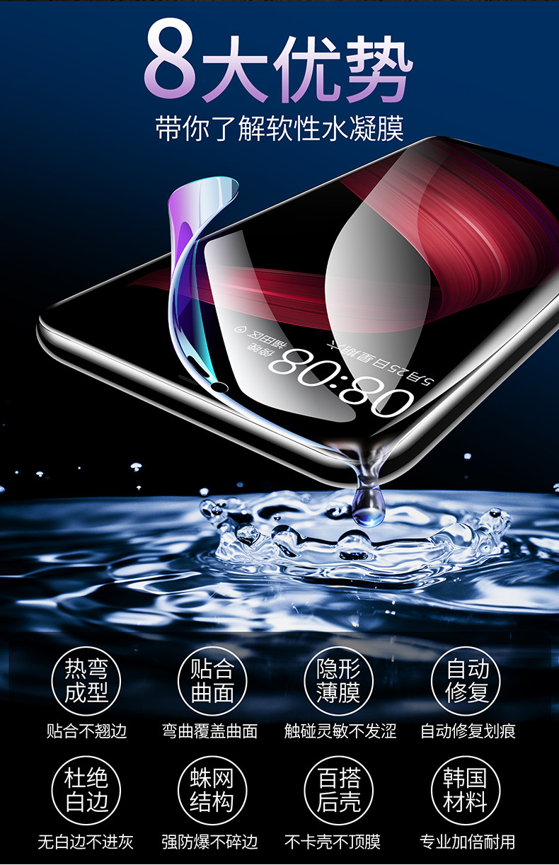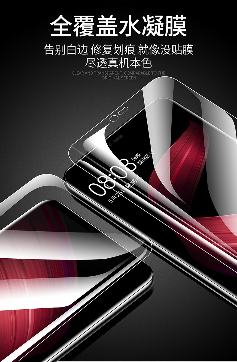 oppor9s水凝膜R9钢化软膜r9sPlus手机全屏覆盖原装抗蓝光护眼曲面软边全包无白边防指纹磨砂高清防摔防爆0pp0