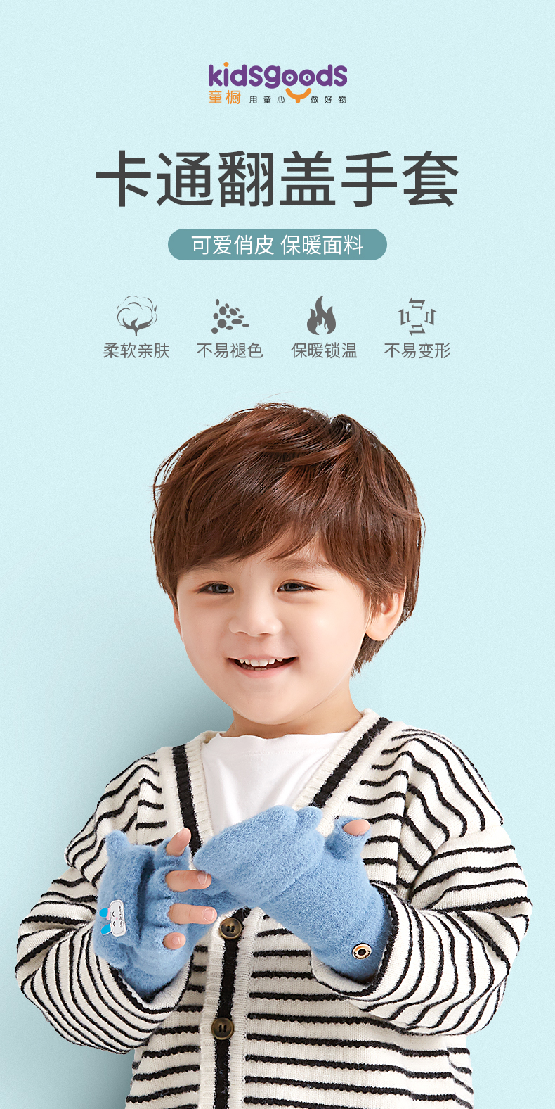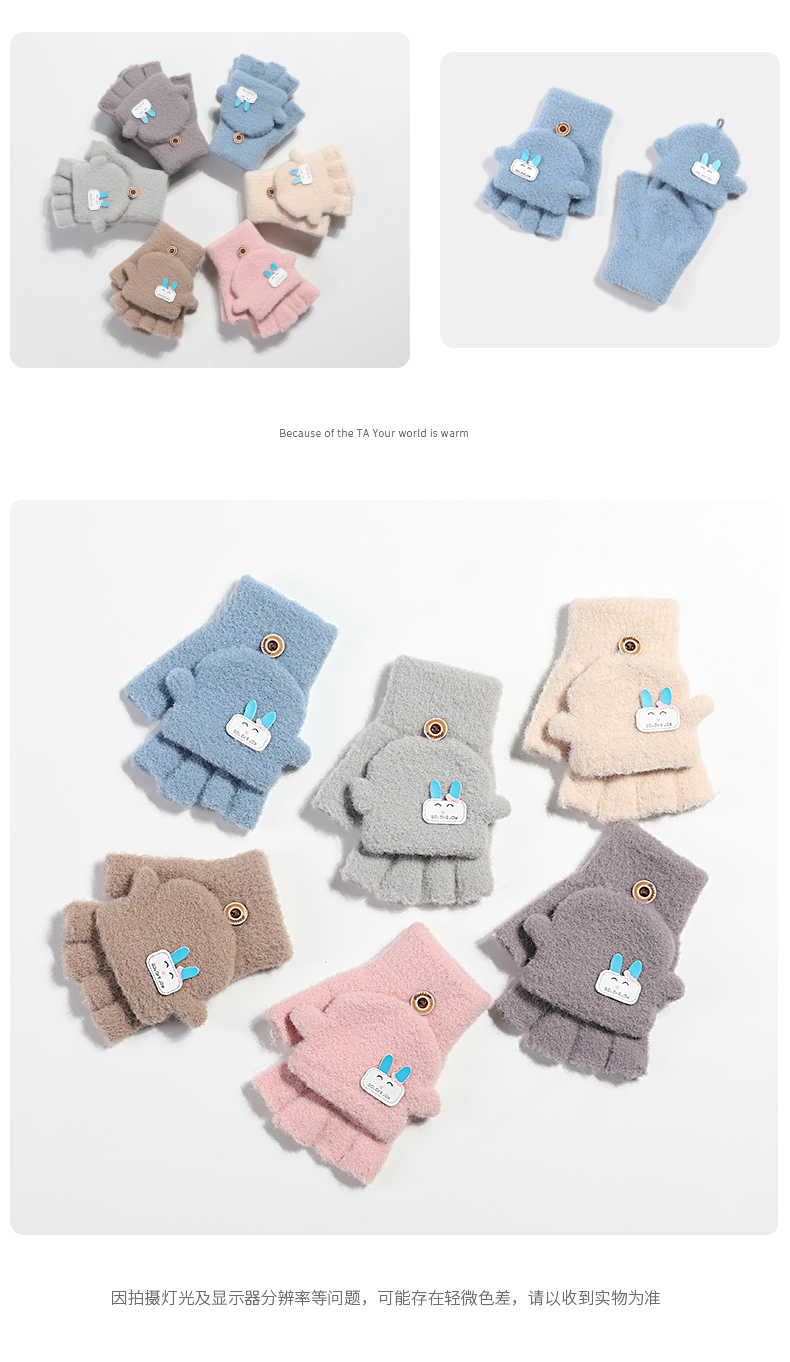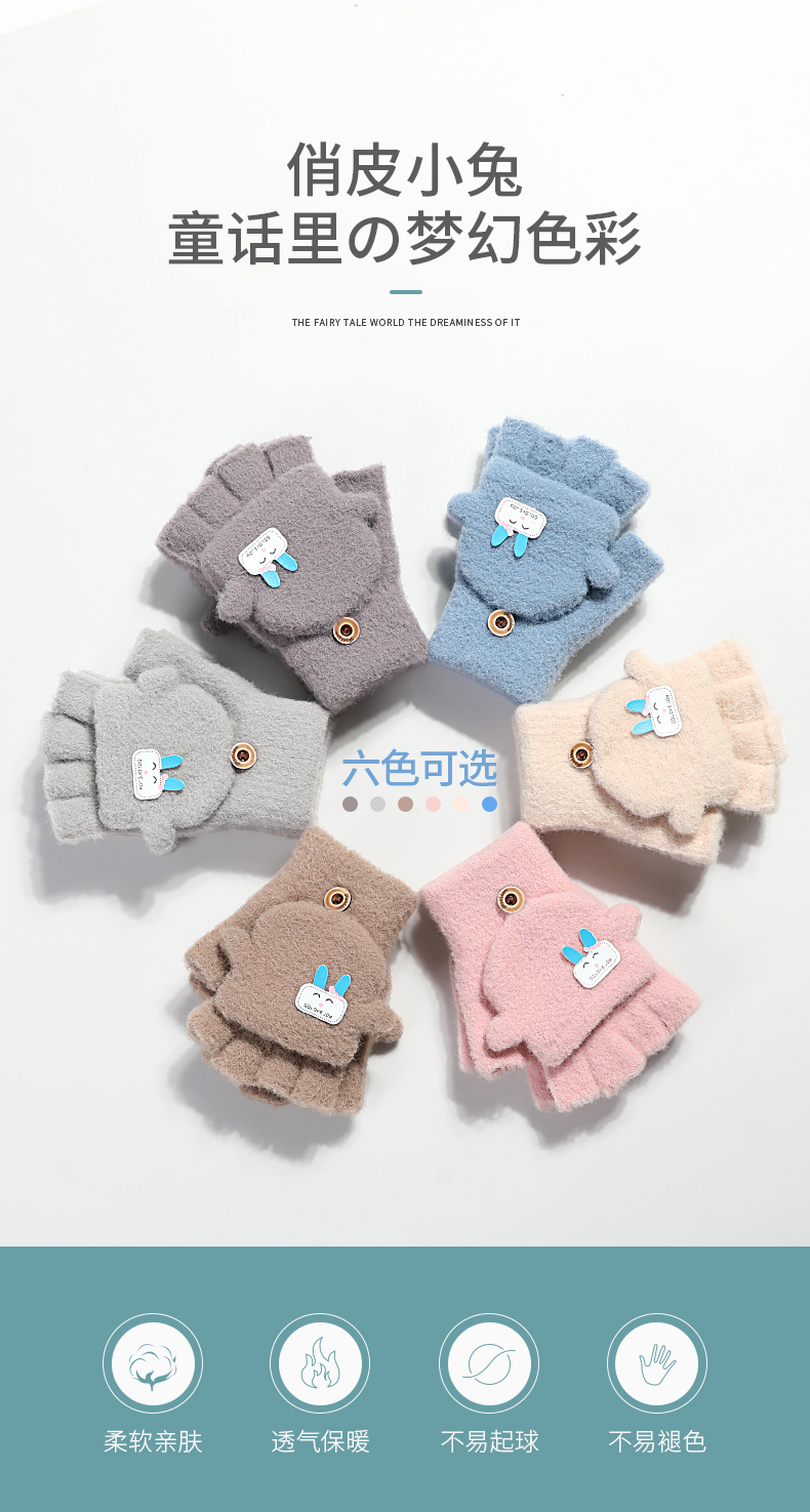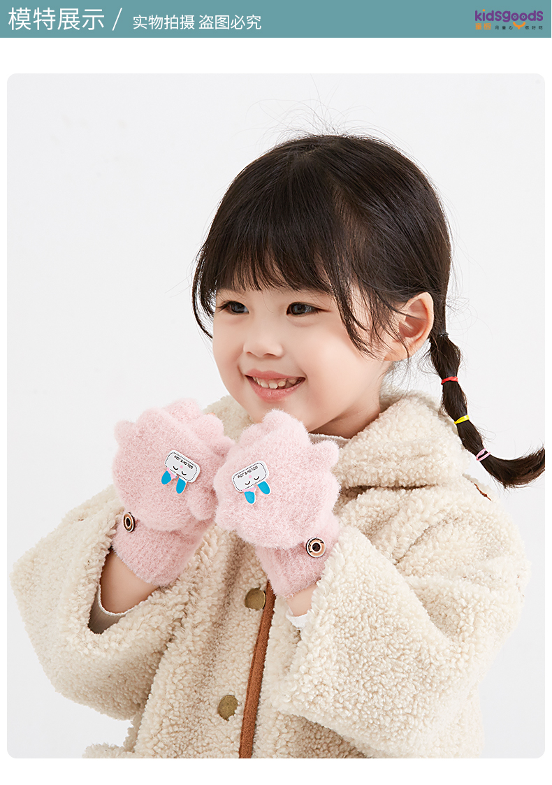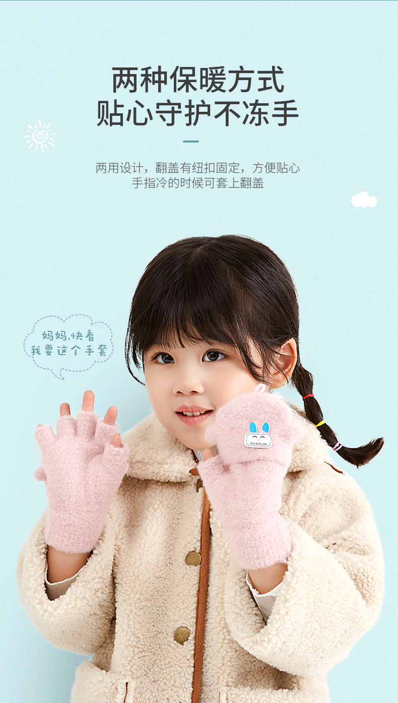 【寒流来袭,保暖手套】精心针织工艺,柔软舒适,亲肤保暖,翻盖半指设计,方便写字、工作、玩耍,手指更灵活,这个冬天宝宝有它就够啦!