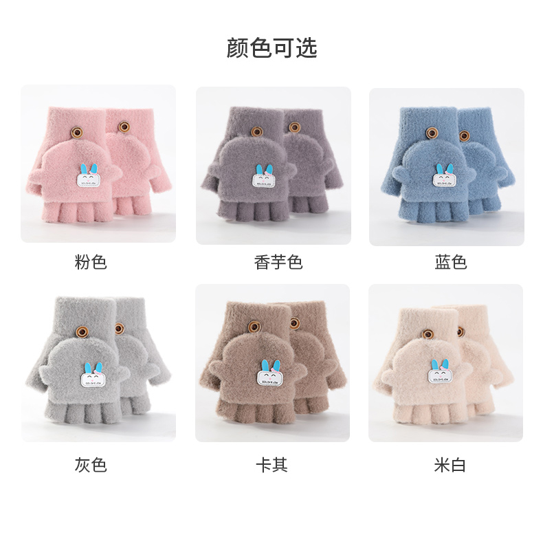 儿童手套冬季翻盖半指男童女童婴儿可爱卡通露指针织加厚保暖宝宝