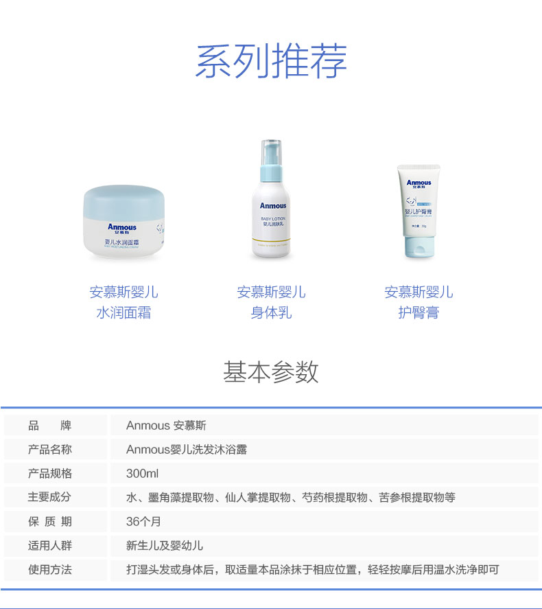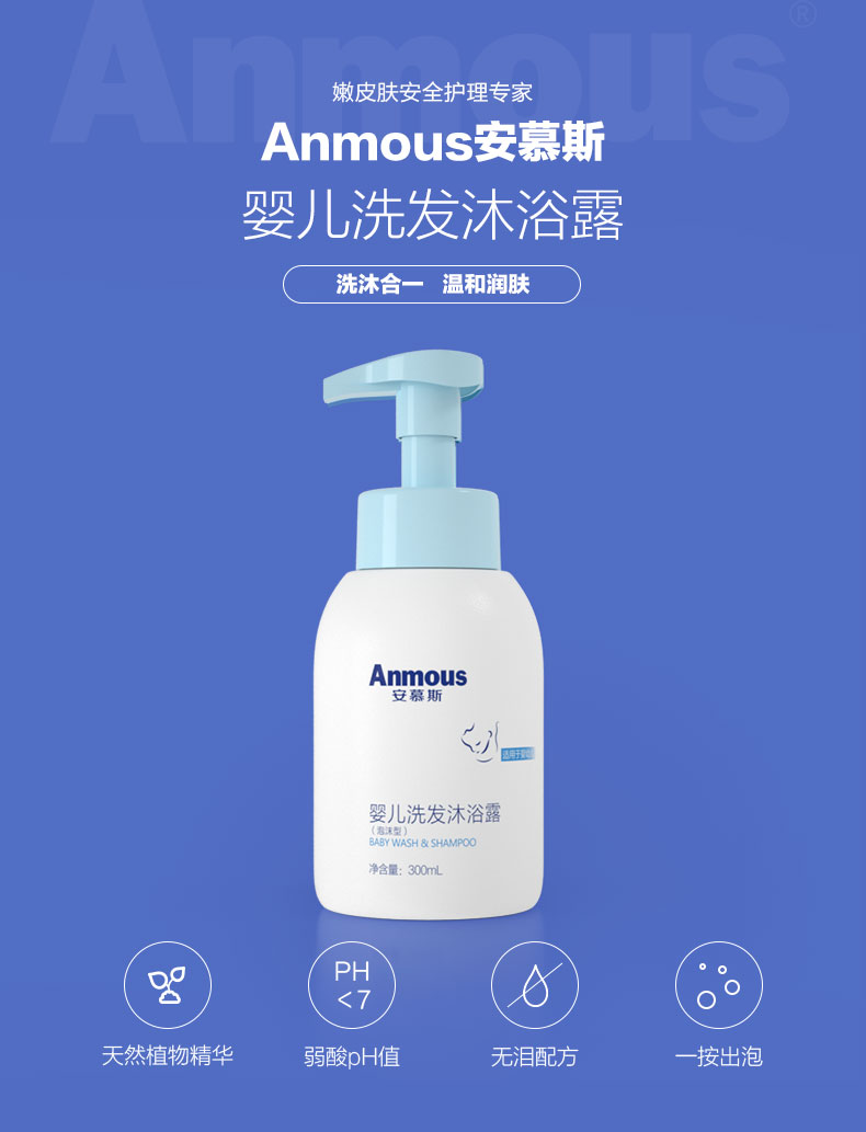安慕斯婴儿沐浴露洗发水二合一正品婴幼儿童沐浴乳新生宝宝专用