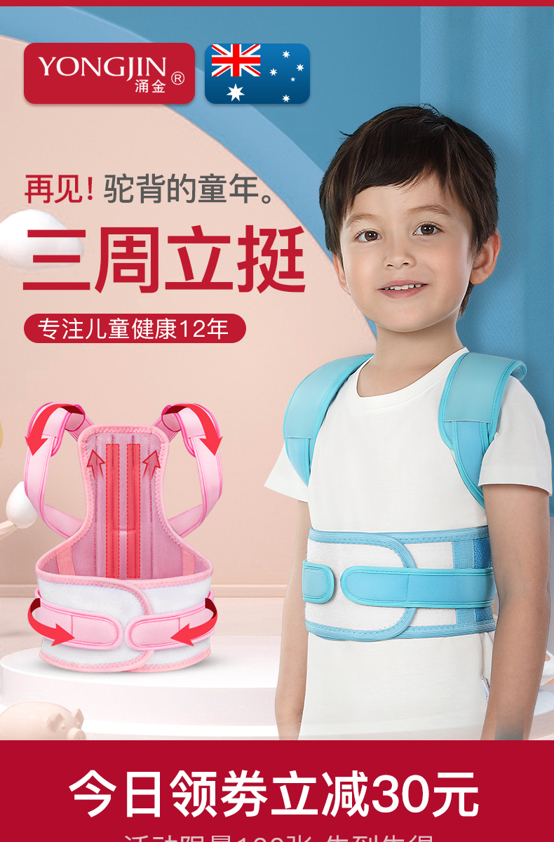 专为7到15岁儿童青少年设计,矫姿防驼背矫正带,驼背矫正,舒适透气,改善驼背、坐姿不良,让孩子挺胸直背,健康成长!