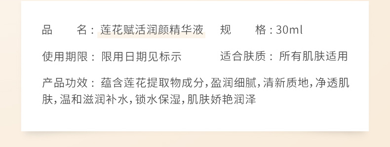 芊慕莲花赋活润颜精华液收缩毛孔粗大修复补水保湿