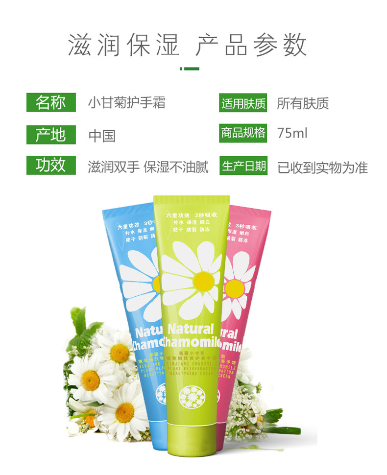 【买1发3】小甘菊护手霜,温和配方,味道清香不油腻,很滋润,味道很好闻,很不错的一款护手霜。保湿小巧,而且有三瓶很划算,小小的很方便携带!