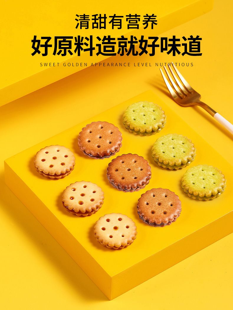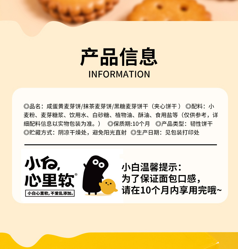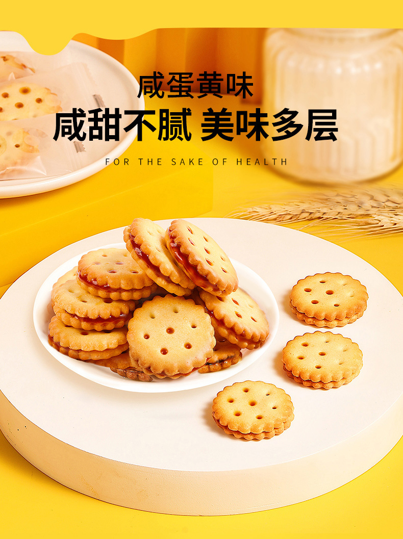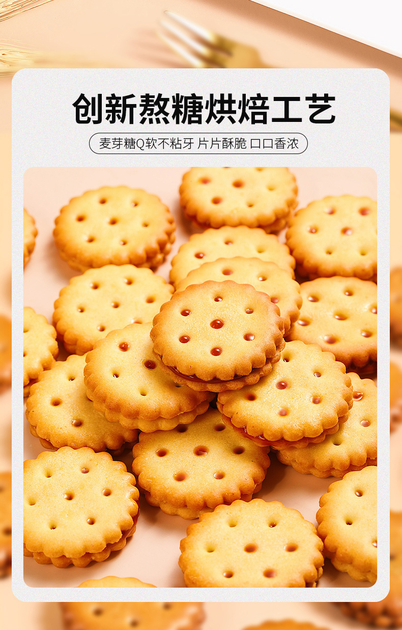 小白心里软咸蛋黄麦芽夹心小饼干黑糖麦芽夹心饼干网红零食品早餐