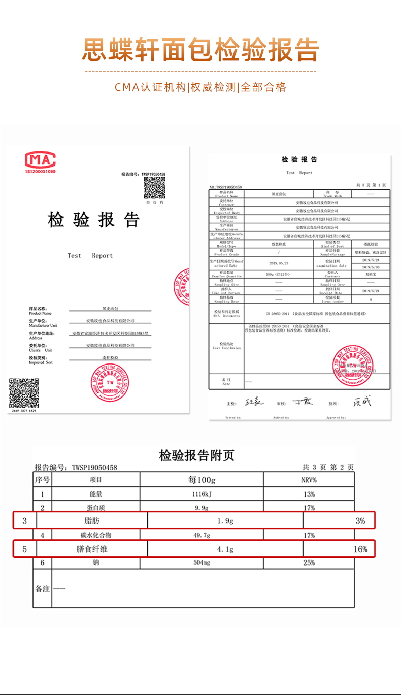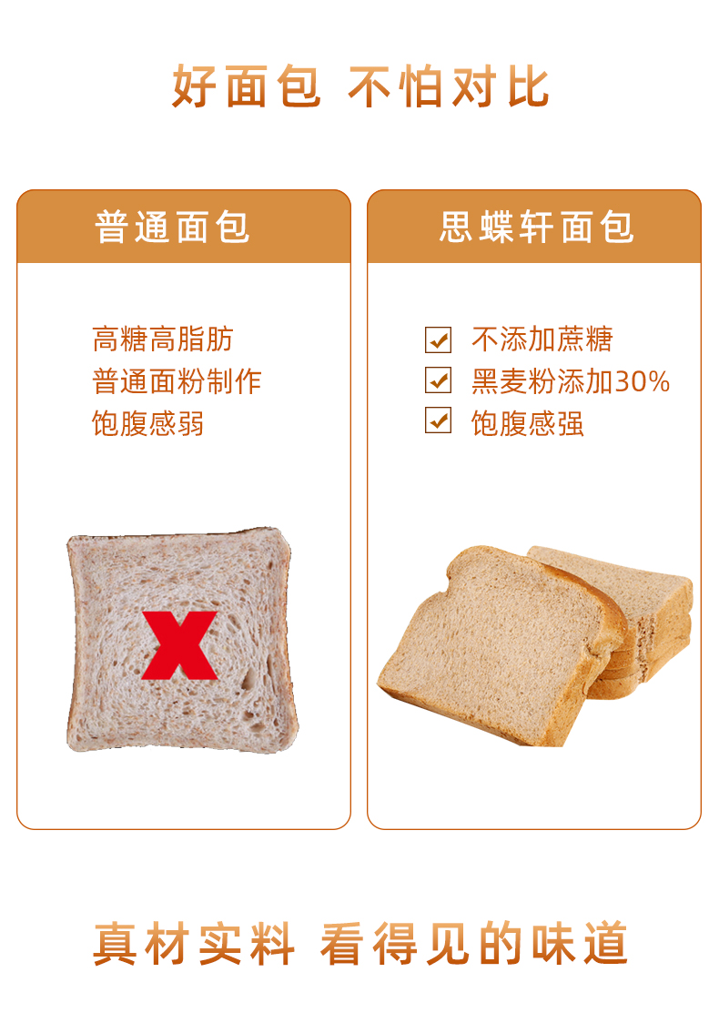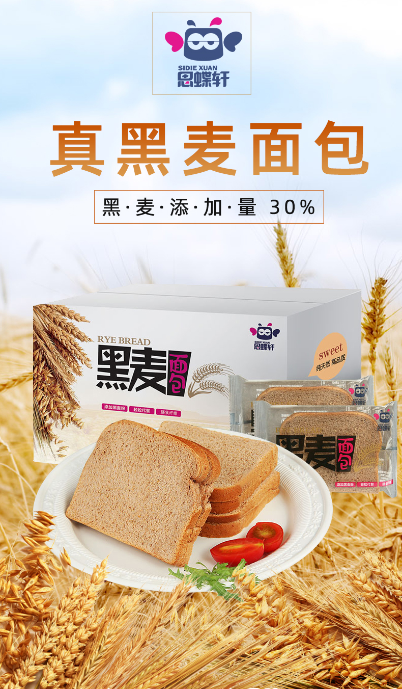 【思蝶轩_黑麦面包1000g】全麦早餐代餐面包健身人群低脂肪零食