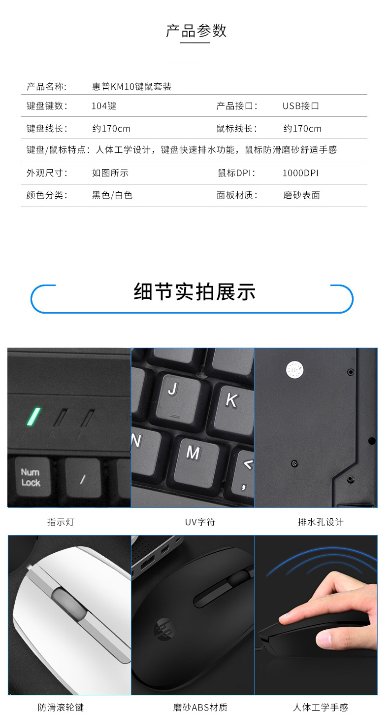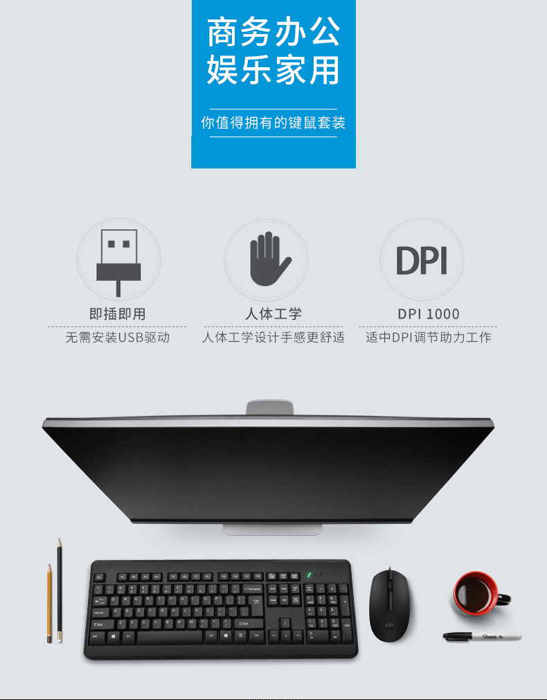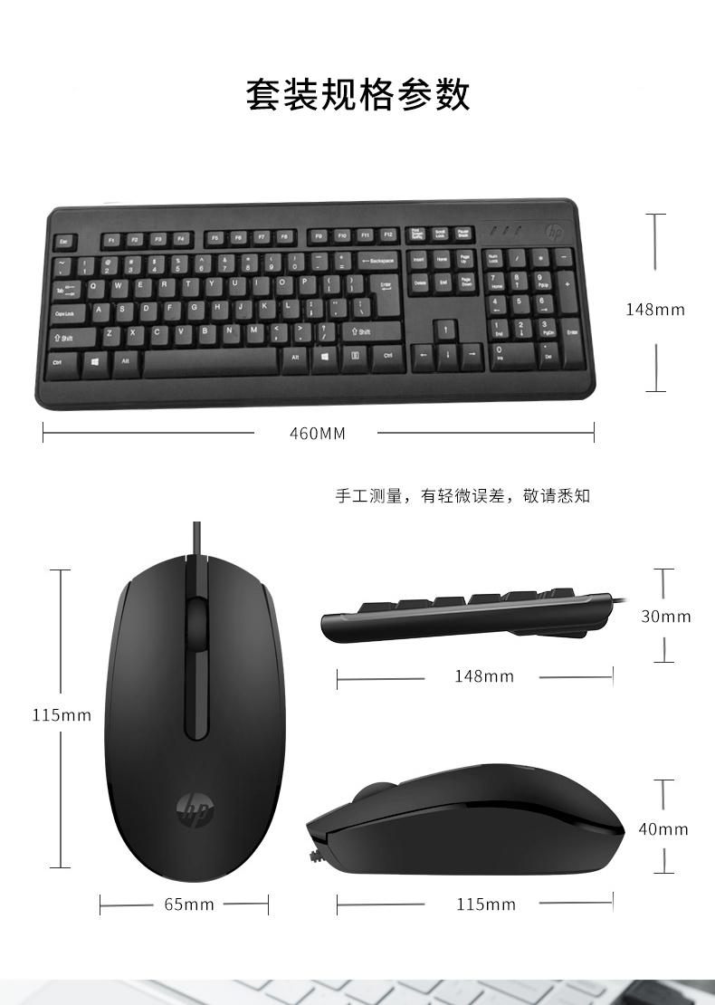 HP/惠普有线键盘鼠标套装台式笔记本电脑通用办公家用USB游戏键鼠