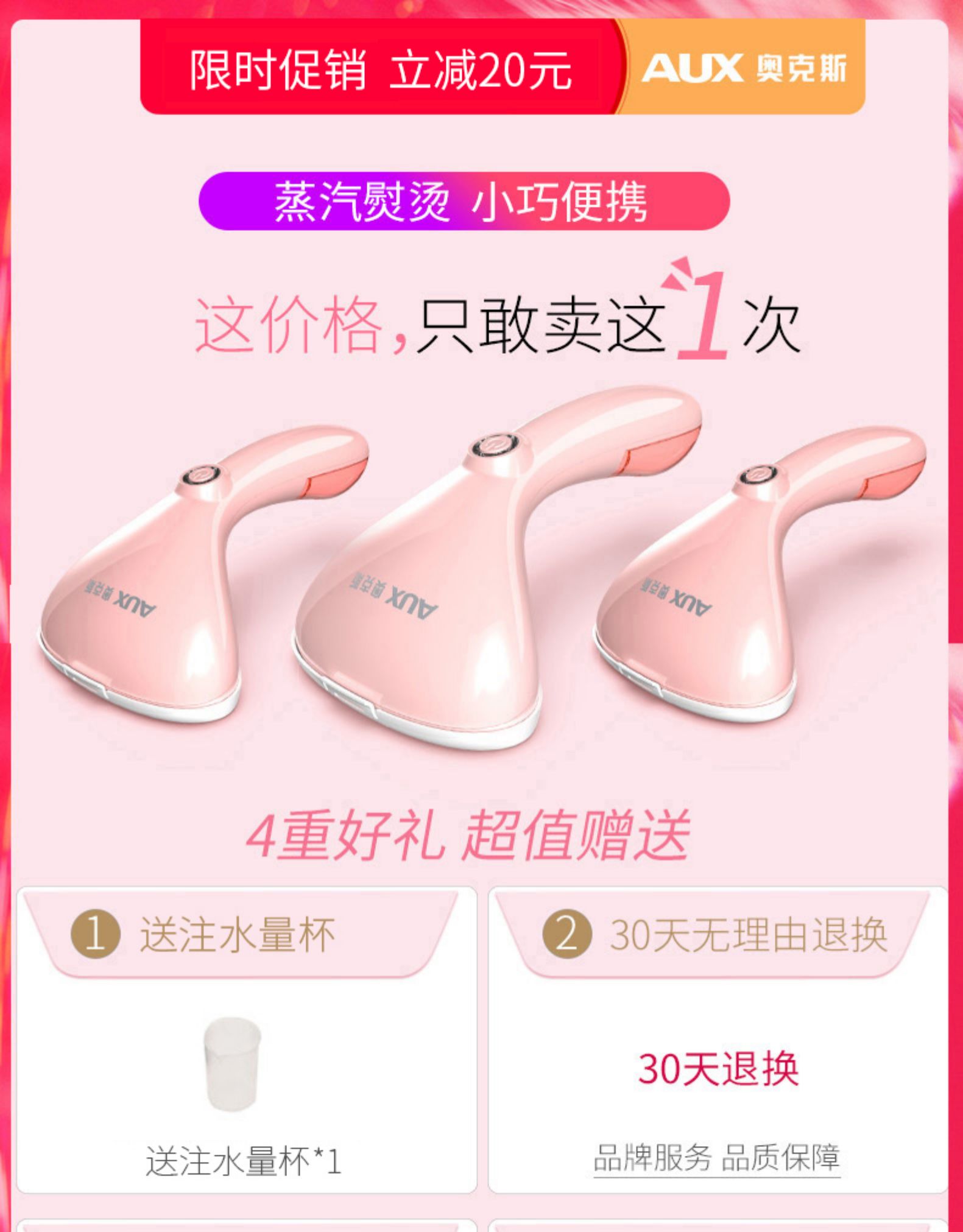 专柜同款奥克斯手持挂烫机,平烫挂烫都可以,持续蒸汽,轻松除皱,小乔玲珑,居家使用不占地易收纳,旅行出差易携带【赠运费险】