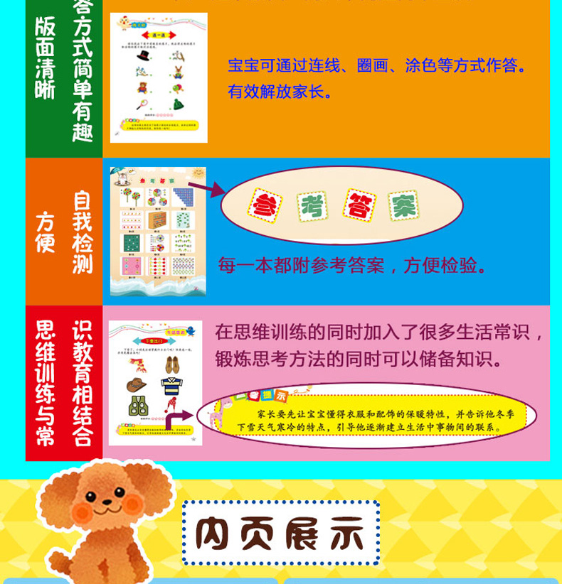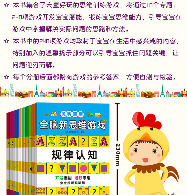 全脑开发思维训练游戏书 8册儿童益智2-3-6-7岁幼儿专注力书籍数学题逻辑大脑右脑600智力365天教材 4到5幼儿园宝宝早教连线找不同