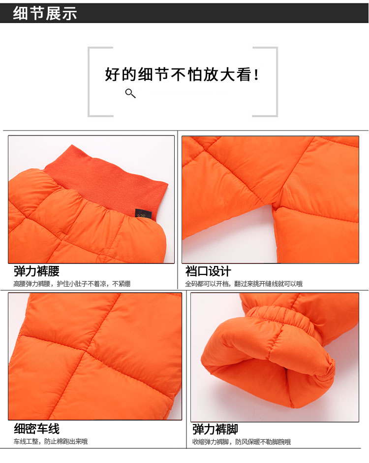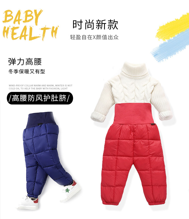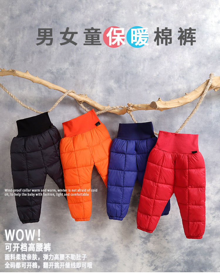 秋冬儿童高腰羽绒棉长裤 婴幼儿可拆裆保暖棉裤