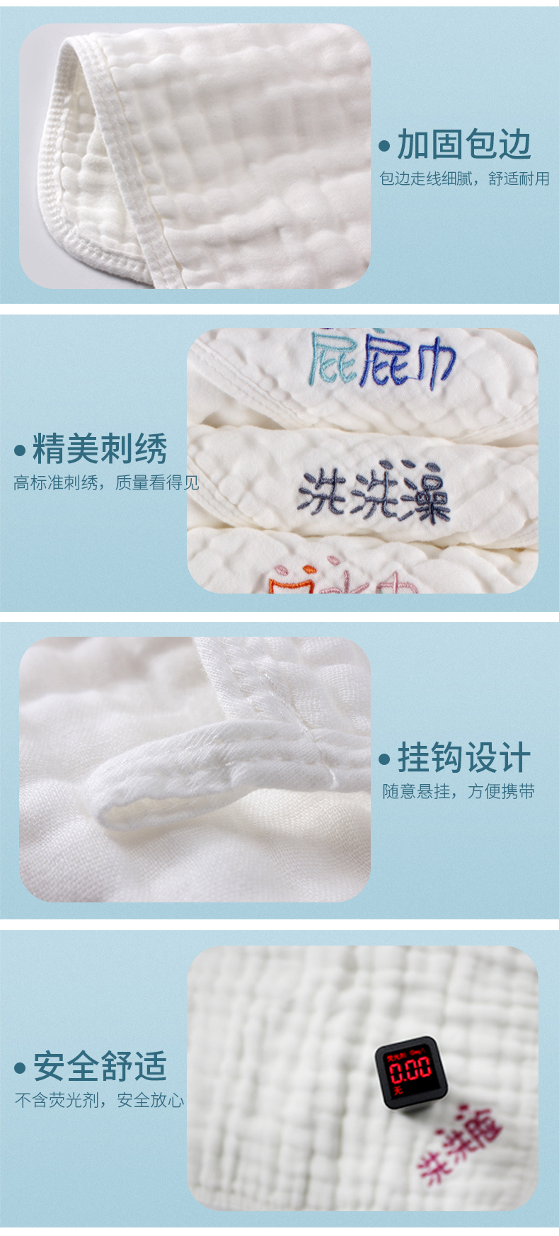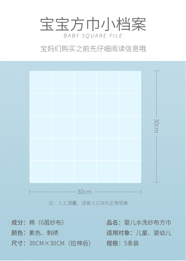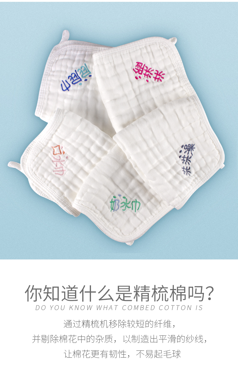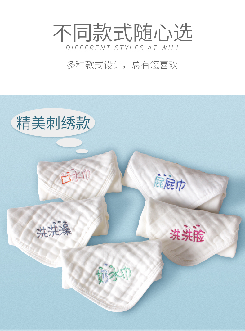 【苏维尼方巾,超值5条】采用优质精梳棉,六层棉纱,A类材质,亲肤透气,贴心分类刺绣,柔软舒适,多功能方巾,宝妈推荐