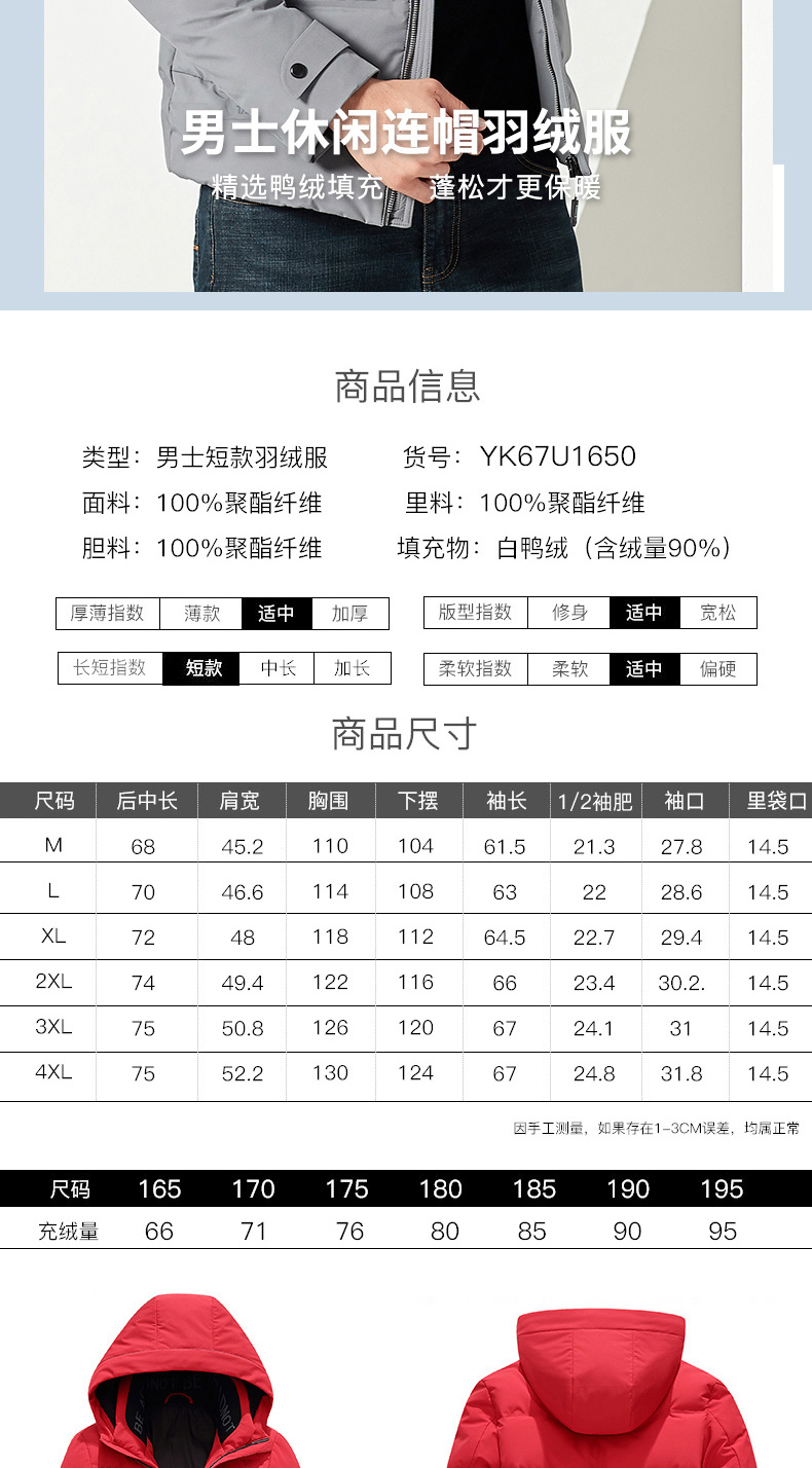yaloo/雅鹿羽绒服男 短款2019冬季新款男士保暖外套修身连帽潮男