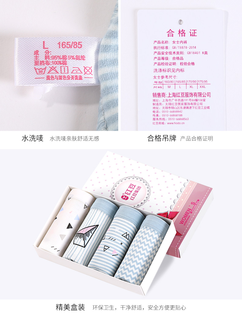 红豆可爱卡通动漫四条装三角内裤,棉质面料,提臀穿成丰满小翘臀,做一个清新简约几何少女,加宽腰边,舒适不勒,更好的舒适体验、纯棉裆部,安全健康,特殊部位更用心。耐穿耐拉弹性好、【赠送运费险】